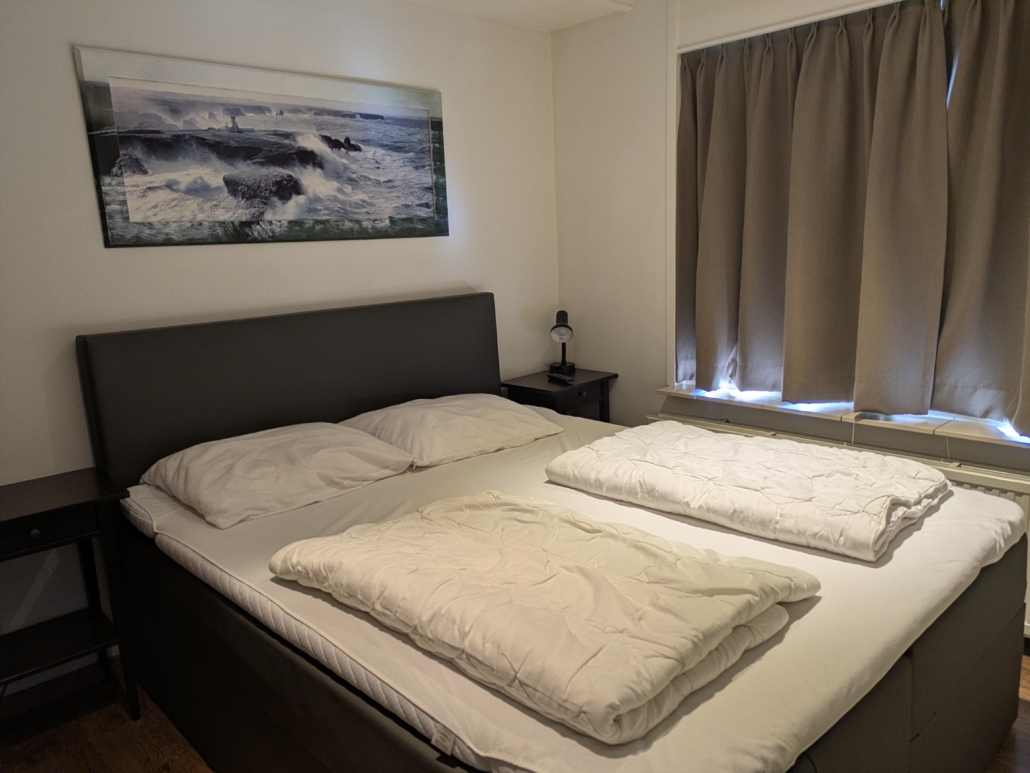 Twee slaapkamers met een tweepersoonsbed en een twee persoons matras